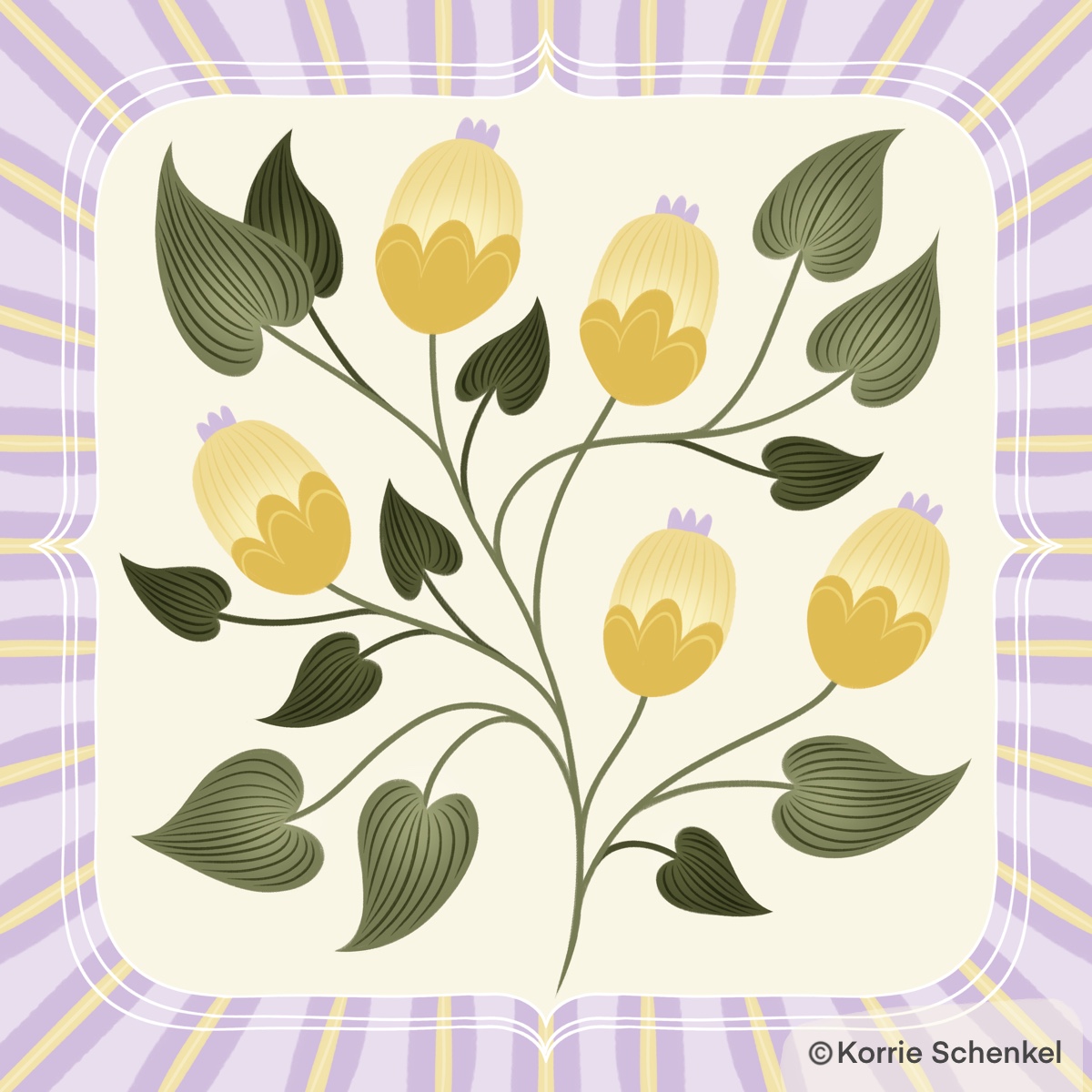 A lovely collection of spring evoking florals with the sweetest bunny and a love bug. Available for licensing.